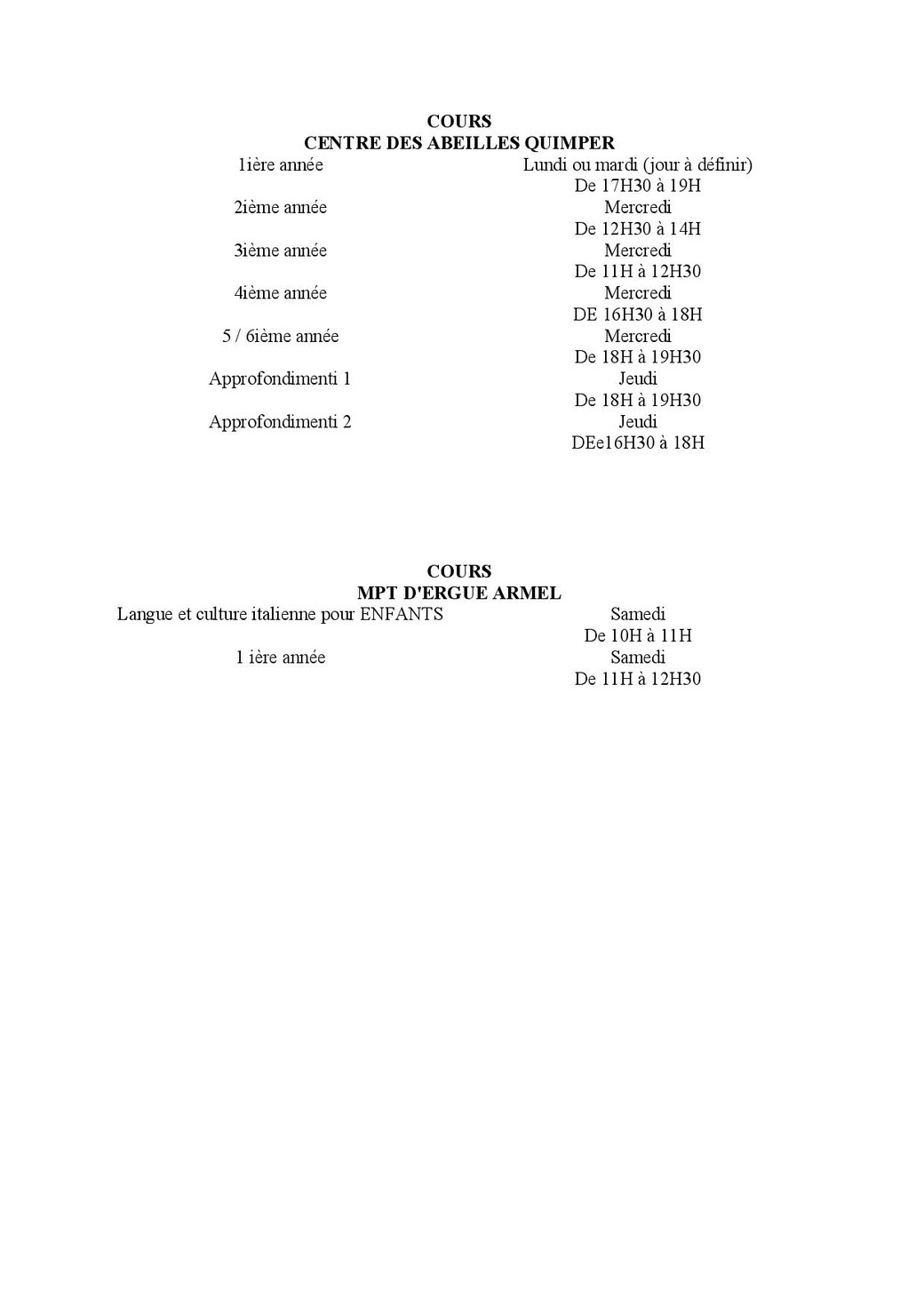 Les dates des cours d'italien sont indiquées ci-dessous :